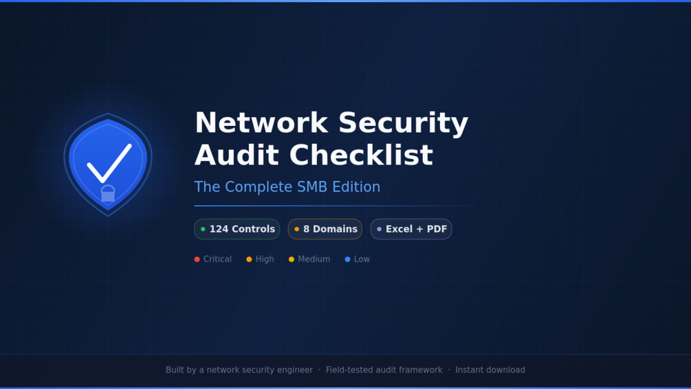 A field-tested, 124-point checklist covering every layer of your network — from perimeter to endpoint. Built by a working network security engineer, not a content farm.
